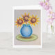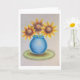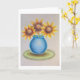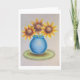 Greeting card featuring a classic illustration of a cheery vase of sunflowers. Perfect for sending any greeting from a simple hello to wishes of sympathy.