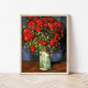 Vase with Red Poppies by Vincent van Gogh is a captivating still-life painting that highlights the artist’s vibrant use of color and expressive brushwork. The painting features a simple earthen vase filled with bold, crimson poppies, set against a textured, muted background. The contrast between the vivid flowers and the subdued surroundings creates a dynamic composition full of energy and life. Van Gogh’s masterful technique conveys the fleeting beauty of the flowers, imbuing the artwork with emotional intensity and timeless charm.