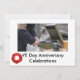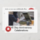 Invitation to a VE Day anniversary celebration including remembrance wreaths and a photo of a member of the Home Guard winding up a record player.