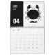 A creative calendar featuring 12 Vedic zodiac signs in geometric designs inspired by their original meanings; animal, bird, sea creature, or human form, arranged month-wise as per traditional Vedic astrology.