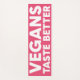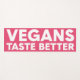 This graphic features bold, pink typography stating “VEGANS TASTE BETTER” prominently. The design employs a modern, eye-catching font that emphasizes the positive message about veganism. The bright color scheme and strong text create an engaging visual, appealing to those who appreciate or promote plant-based lifestyles. This piece can serve as a slogan for a vegan campaign, restaurant, or awareness initiative