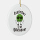 Lightweight, smooth, pure white ornament with nice sheen. Perfect size to be seen from across the room ... and to attract closer inspection! Price was great for ordering enough for the whole family! Clear, bold black design just as requested. Matches the order exactly. Just so nice!