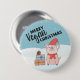 This Vegan Christmas button features a nice cartoon piglet with a red hat and scarf and some colorful presents, on a snowy background.