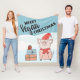 This Vegan Christmas fleece blanket features a nice cartoon piglet with a red hat and scarf and some colorful presents, on a snowy background.