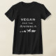 My overall review is that the T-shirt is nice, it fits true to size however the font is significantly smaller than advertised and you can't read it. The printing is unreadable and there is a strain to read it. It does not look like the advertised product. Maybe the shirt color is darker or a larger more visible font should have been used. Photos with and without flash and font is barely legible.