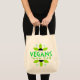 Attractive grocery tote with vegan message: Vegans Love Life in shades of green.