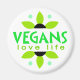 Pretty green floral design on this vegan magnet with the words Vegans Love Life.