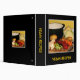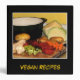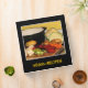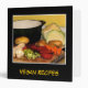 Easily customize the front and spine text on this vegan recipe binder which is decorated with the makings of a fine vegetable soup. The carrots, beets, cabbages, potatoes, onions, garlic and celery are chopped and ready for the pot. The black background and gold text complete a cheerful, homey kitchen design.