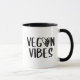 This "Vegan Vibes" mug features a heart with a leaf and a black quote.