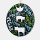 "Vegan" Word-Cloud Mosaic with a cow, pig, hen. Ceramic Ornament