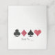 Perfect for a glamorous and glitzy Las Vegas casino wedding, this white folded place card features faux red glitter with black card suits, a pre-printed space to write in table numbers and a blank white space to write in your guests names. Does your caterer need to know each guest's meal choice? Edit this design to add a colored backer unique to each meal type or use a sticker to denote who gets what type of meal. These cards are sold in packs of 25 so don't forget to order enough for each place setting!