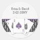 purple Las Vegas Wedding envelope stickers with 3 aces and a touch of damask .Matching products also available