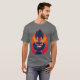 My 11 yo wore adult XL (5’7” 165#). The 8yo is small framed. She wore adult small and tied it in the back. Grandma wore adult large with long sleeve shirt underneath. Tall girl adult medium. Dark haired male adult large. Good quality dark Heather gray, Gildan brand shirt. -it was next up from basic choice and cost about $20 per shirt. Not too thick or thin. Washed and dried well, no major shrinkage. Not see-through. Can wear a bra under it fine. Screen print is just as shown and well done, front and back.