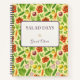 Soft Lemon spiral notebook with ivory title panel reading ‘Salad Days & Good Cheer,’ bordered in plum, with watercolor tomatoes, onions, carrots, lettuce and herbs