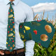 Vegetable pattern tie. Dark teal blue neck tie with colorful pictures of veggies, such as corn on the cob, leeks, peppers, onions, strawberries, mushrooms, potatoes, squash, and garlic. Perfect for dressing up a farmer, grower, gardener and / or vegetarian.
