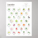 Infographic poster visualizing the nutritional values of 32 of the most common vegetables including their macronutrient content (carbohydrates, proteins and fats), micronutrient content (minerals and vitamins) and calories.