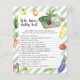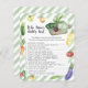 "Locally grown baby is on the way". Celebrate with this watercolor vegetable themed baby shower party! Watercolor cucumber, onion, eggplant, zucchini, yellow and red tomatoes, radishes, carrots, hot pepper, sweet yellow pepper, peas and cabbage, broccoli and beetroot on a cutting board. Watercolor organic harvest.