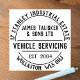 Vehicle Servicing Rubber Stamp. Company Name, Business type, plus Two Lines of Address in a circular effect. A business rubber stamp for all kinds of stationery items, envelopes, packages etc. Stamp your return address easily and stylishly.