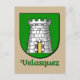 Hispanic surname Velasquez family shield set on a parchment style background.