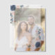 This romantic dusty blue and blush vellum wedding invitation embodies modern elegance with a painterly touch. Featuring a delicate blend of soft pink florals, deep navy roses, and ethereal greenery, all accented with gold splatter details, this design is perfect for refined celebrations with a hint of artistic charm.