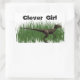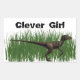 Clever Girl written in prehistoric-type writing above a drawing of a velociraptor. Perfect for a sticker. Apply it to all your favorite places: on notebooks, backpacks, cell phones, or any other place where a sticker works! Available in other sizes and shapes, but check the "preview" of your design before ordering to make sure you like the way it looks.