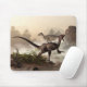 A pair of velociraptors patrols the shore of an ancient lake looking for their next meal.