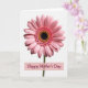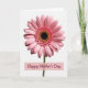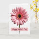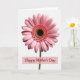 This design shows a pink daisy-like flower centered on a bright white background, lit with soft, diffused light that makes the petals look silky and gently ridged. The bloom feels like a quiet hug ❤️, with evenly fanned petals that draw your eye inward in a calm, affectionate way. In the middle, a dense black center creates strong contrast, like a close, steady gaze. Around that dark core sits a ring of tiny yellow-orange bead shapes that glow like a warm halo 🌼, then shift into smaller pink florets before opening into lighter pink outer petals. Beneath the flower, a muted pink rectangular banner stretches across the lower area of the design. The words “Happy Mother’s Day” are placed on the banner in deep berry lettering with flowing strokes. The bright white space around the flower stays uncluttered, making the centered blossom and the soft pink banner stand out clearly.