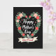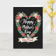 This card features a deep black background that makes the central artwork glow softly, like a quiet evening scene made for sharing affection ❤️. In the middle sits a heart-shaped wreath built from layered green leaves and roses in pale pink and warmer coral-red tones, with gentle shading that gives the petals a tender, close-up feel. Small white and coral star-like shapes are scattered among the flowers, adding a light sparkle that feels like little shared moments between two close friends. Centered inside the heart, white lettering in a flowing style carries the main message, standing out clearly against the dark backdrop. Along the lower portion, a cream-colored banner stretches across the design, creating a cozy base under the wreath 🌼. Resting on top of the banner is a small simplified bird with gray feathers and a tiny red beak, as if it has just arrived with a sweet note. On the banner itself, a second line of text appears in bold red lettering, placed neatly across the ribbon’s fold. The heart wreath is framed by the scattered star accents, with the bird perched slightly above the banner’s center.