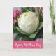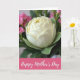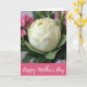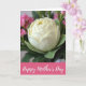 Designed with a still-life look, the card centers on a large creamy white flower with many layered petals that curl softly, like it’s being offered with gentle care ❤️. Deep green leaves cradle the bloom, creating a rich contrast that draws your eye inward. Behind it, smaller cerise flowers appear in a soft blur, like a sweet cluster gathered nearby for someone special. The diffused lighting adds tender shadows along the petal edges, giving the scene a calm, intimate feel. Along the bottom, a wide fuchsia band stretches across the design, carrying the main message in white lettering. The text sits centered on that band, standing out clearly against the bright color, with a small 🌼 detail nearby. In the background, the cerise blossoms fade softly while the white flower stays crisp and luminous at the center.