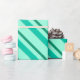 The look of velvet ribbons in diagonal stripes - turquoise and peacock stripes against a soft aqua background