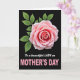This card features a single large pink rose near the top, its petals curling outward like a gentle embrace that suggests closeness and affection ❤️. The bloom shifts from a deeper pink at the tight center to a softer blush at the edges, where a touch of creamy white appears. Crisp green leaves with visible veins and lightly jagged edges frame the flower, adding a fresh contrast. A deep black background makes the rose and leaves stand out, like a quiet moment shared in the dark where the details feel more intimate. Below the flower, a short line of white, flowing lettering sits above a much larger phrase in bright pink, centered and easy to spot. The mix of white and pink text feels like two voices in a sweet exchange, one soft and one proudly spoken 🌼. Soft lighting catches the layered petals and leaf surfaces, while the black backdrop stays smooth and shadowy behind them.