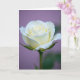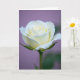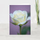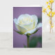 This design shows a close-up view of a single flower bud filling most of the frame, like it’s leaning in for a quiet moment ❤️. The petals curl tightly at the center in creamy yellow, then open outward into crisp white layers that feel soft and velvety to the eye. Gentle, diffused light slides across each curve, creating small shadows that read like a tender glance between close friends. A deep green stem and small leaf-like supports sit beneath the bloom, grounding the scene with natural contrast. There’s no wording on the front, keeping all attention on the flower’s form and color. The background fades into a smooth, out-of-focus wash of muted lavender-purple, adding a calm, romantic hush 🌼. The outer petals show fine ridges and slightly curled edges, with the brightest highlights along the top-left side.