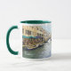 White and hunter green 11 oz. combo mug with an image, on both sides, of quaint cafes along a canal in Venice, Italy. See matching candy jar, paper plate and square ceramic tile. See the entire Italy Mug collection in the HOME section.