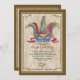 An elegant Venetian mask with festive colors and bells is featured against a decorative frame with a grunge background.