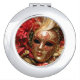 Add a touch of elegance and mystery to your everyday routine with this stunning red and gold masquerade compact mirror. Featuring an ornate Venetian mask design with intricate filigree, radiant gold tones, and rich crimson accents, this piece blends beauty and function into one timeless accessory.
