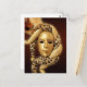 Customizable postcard with beautiful vintage Renaissance theme featuring a golden female jester Venetian mask.