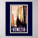 Vintage tourism and travel advertisement illustration for Venice, Italy. Design features gondolas on their canals. I added thoughtfully designed, colorful graphic design borders.