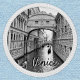 This patch for travel lovers features a wonderful black and white original photograph of Venice (Italy) with two of the most famous symbols of Venezia: a gondolier rowing near the iconic Bridge of Sighs, or Ponte Dei Sospiri in Italian.