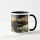 White and black 11 oz. ringer combo mug with an image, on both sides, of a compilation of images of romantic Venice by night.