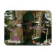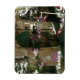 Lovely Venice, Italy travel souvenir magnet, with a graphic enhanced photo of a gondolier next to a floral laden brick building.