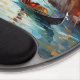 The plastic backing is nice and sturdy. The grippy pads underneath keep the mouse pad where I put it on my table. The pad the mouse sits on is cut well to fit the backing. The wrist pad is perfectly soft, supportive, and thick. I'm left-handed, and this mouse pad works just as well for me as it does for my right-handed friends. I'm the designer of HippieClecticHope products. I'm blown away by how well my intricate fractals turn out on the tangible items in the Zazzle Marketplace. This particular mouse pad ***appears*** like a 3D object... A mathematically-engineered rainbow black opal, inlaid under transparent fabric...
