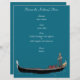 Create a custom menu for your dinner or special event with an Italian theme. This single sheet menu flyer is ready to be personalized with your own list of dishes and features an illustration of a gondolier and gondola set against a teal blue background making it perfect for Italian themed meals.