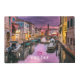A laminated placemat with a beautiful scenic landscape photo of a canal in Venice, Italy. With dark purple clouds, looks like a storm is coming. Great capture of the unique venetian architecture and watery reflections. Text says: Venice, italy (which can be changed / personalized ) with a little heart above.