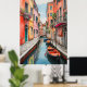 Immerse yourself in the enchanting beauty of Venice with this stunning poster showcasing a picturesque street scene in the heart of the iconic Italian city. The illustration captures the essence of Venice with its charming cobblestone streets, colorful buildings lining the canal, and gondolas gracefully gliding through the waterways. Every detail, from the intricate architecture to the vibrant flowers adorning windowsills, transports you to a world of romance and history.