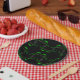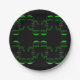 Unusual party paper plate with an eccentric Venus flytrap pattern in black and green.