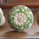 The "Verdant Blossom Elegance Ceramic Knob" showcases a beautifully detailed floral design, centered around a large, ivory flower with radiating petals. The flower is surrounded by lush, flowing green leaves and small blue berries, all highlighted with delicate golden accents that add a touch of luxury. The organic shapes and intricate patterns are inspired by the Art Nouveau movement, creating a harmonious and elegant composition. The serene color palette and meticulous craftsmanship make this knob not just a functional accessory but a piece of art that adds a touch of nature's beauty to any room. Perfect for those who appreciate fine craftsmanship and floral motifs, this ceramic knob will enhance the aesthetic of any interior space with its graceful and refined presence.