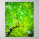 his photograph captures a breathtaking perspective from beneath the lush summer foliage of Karuizawa. The vibrant, translucent green leaves are illuminated by soft sunlight filtering through the branches, creating a natural mosaic of light and shadow. The gentle curve of the tree trunk leads the eye upward, evoking a sense of peace, growth, and the quiet majesty of the Japanese highlands.