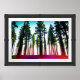 This stunning image captures the awe-inspiring beauty of looking up into a forest of tall trees. The viewer is transported to a lush green world, where the trees reach for the sky like giants. The sun shines through the leaves, creating a magical dappled effect on the forest floor.