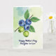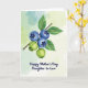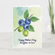 Designed with a tranquil watercolor look, the front centers on a small cluster of ripening berries nestled among rich green leaves, set against a softly blurred wash that feels calm and affectionate ❤️. Five rounded berries form the focal point, with three in a deep blue tone and tiny star-shaped tips that make them look carefully observed. Two berries remain a fresh green, hinting at growth, like a gentle nod to a caring bond that’s still unfolding. A slim, dark branch runs through the cluster, giving the composition a grounded, steady feel. The background blends muted aqua with soft lime in a mottled, sun-dappled haze that keeps the berries and leaves crisp in the foreground. Near the bottom, the message “Happy Mother’s Day Daughter-in-Law” sits beneath the artwork in dark blue lettering, centered and easy to read 🌼. The leaves show layered greens with subtle gradients, and the blue berries have soft highlights along their rounded edges. The overall scene includes a pale aqua-and-lime backdrop with a slender dark branch cutting diagonally behind the berry cluster.