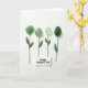 Designed with four stylized flowers arranged across a bright white background, this card features frosted glass-like petals that look gently tumbled by the sea, suggesting a quiet closeness like friends standing side by side ❤️. Each bloom is made from an irregular piece in shades of green, ranging from deep forest tones to pale seafoam translucence, with soft light catching tiny inner refractions. Thin, dark wire stems rise neatly from below and split into small offshoots, holding a few uneven leaf shapes that mirror natural foliage. The spacing feels balanced and calm, and the slight shadows under each glass piece add a subtle sense of depth without crowding the scene. Near the lower center sits a small, textured rectangular note card that anchors the arrangement like a shared token between two people 🌼. A short message appears on that note card in flowing, dark lettering, centered and easy to spot against the lighter texture. The glass petals show faint highlights and muted green gradients, with delicate shadows falling just to one side on the white surface.